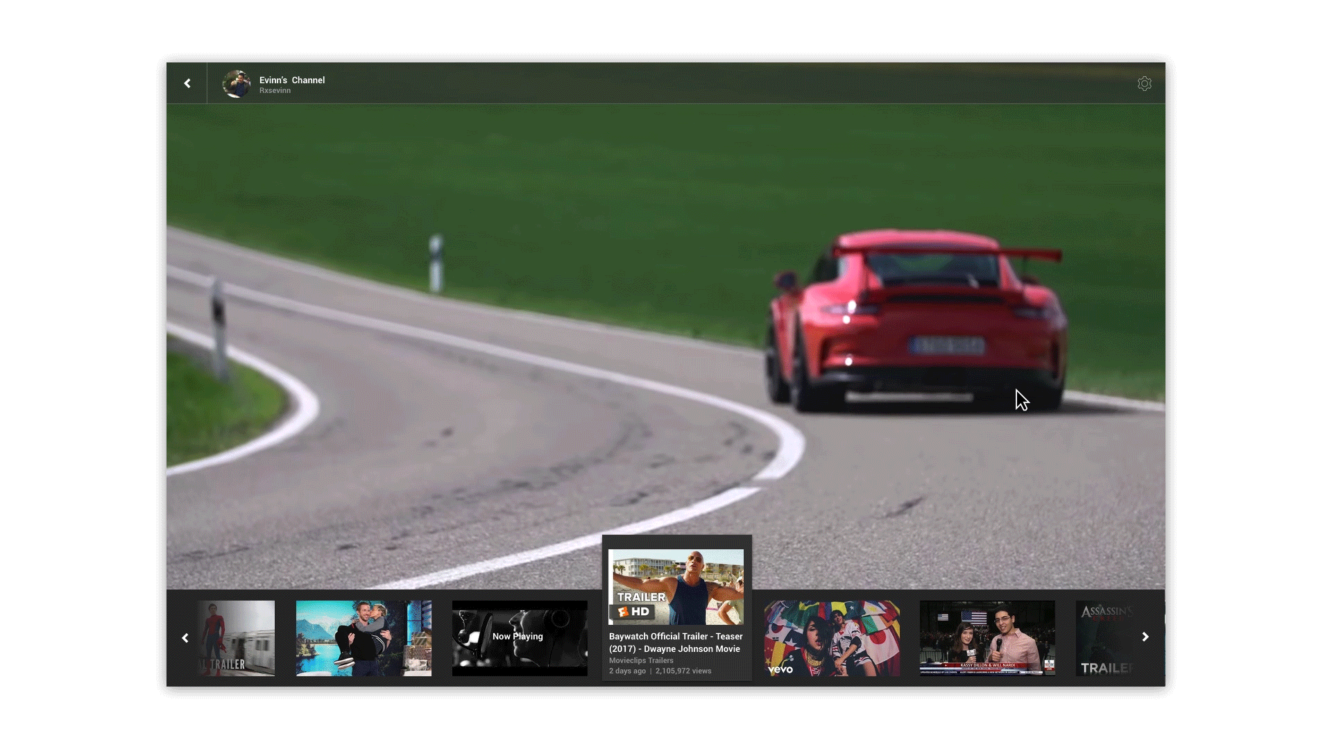 Once you click on a video, the player will launch into fullscreen. You can see the stream that you are watching above, as well as access the full stream of videos upon rollover.